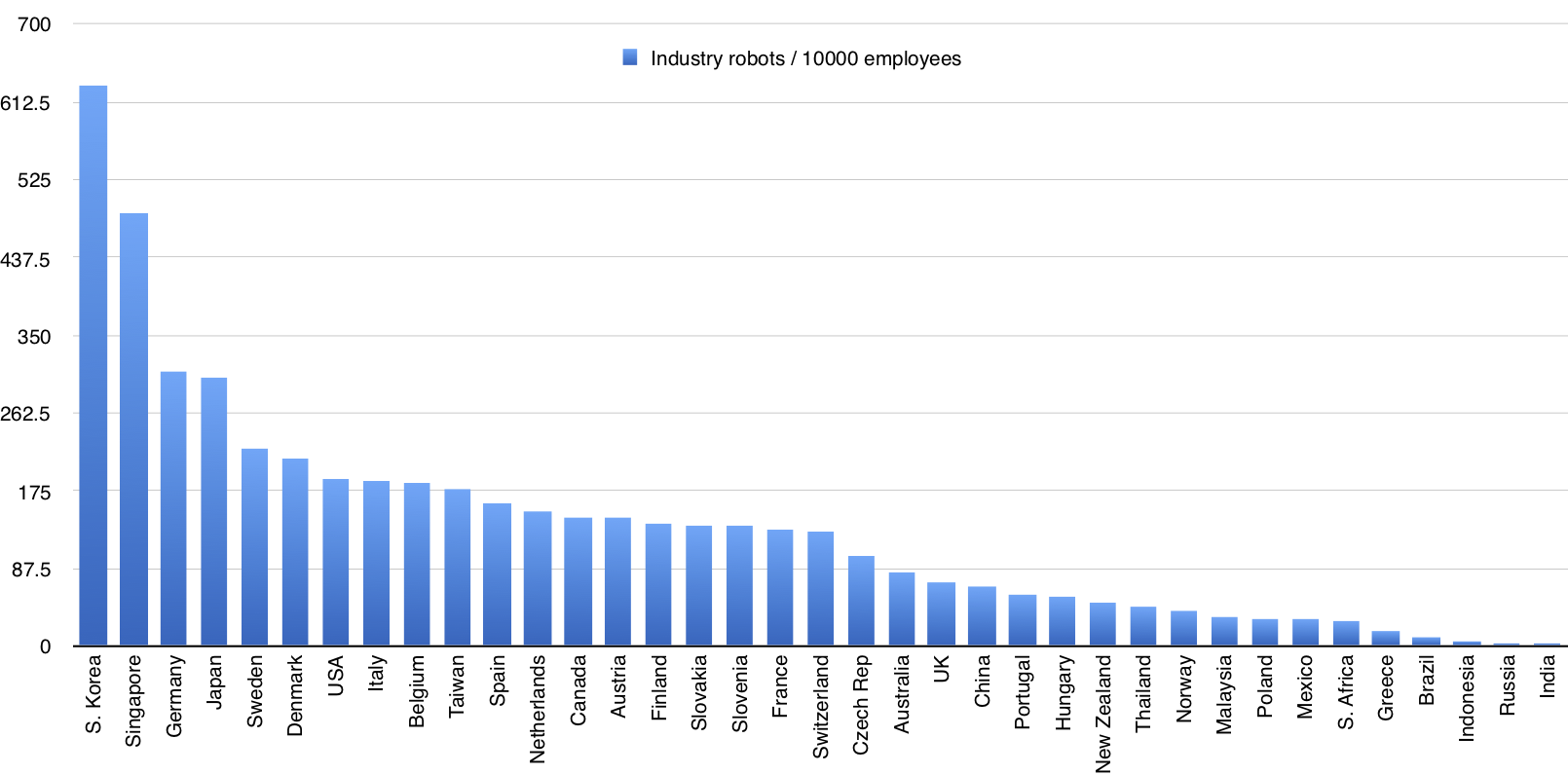 It is interesting to note that a country such as Vietnam has seen an increase in sales of 410% year-over-year which could be a direct consequence of the increased salaries in China. It is now cheaper to manufacture elsewhere in Asia and as such, there is an increased pressure on China to automate or the manufacturing will move to other countries with lower salaries.